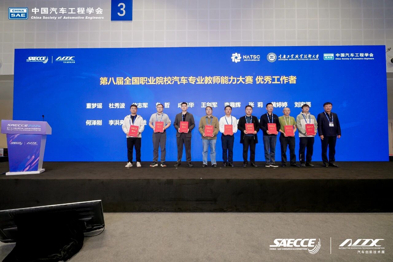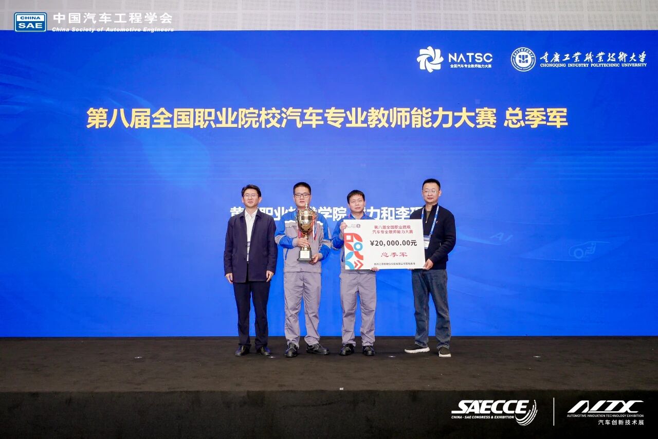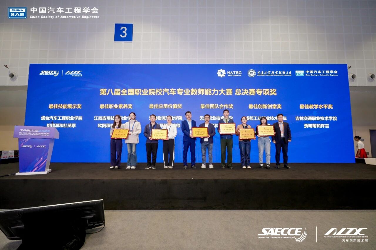 2025年10月24日上午,第八届全国职业院校汽车专业教师能力大赛总决赛在重庆科学会堂圆满闭幕,与第三十二届中国汽车工程学会年会暨汽车创新技术展同期举办。大赛由中国汽车工程学会主办,国家智能网联汽车创新中心、国家新能源汽车技术创新中心、国家燃料电池技术创新中心、全国汽车职业教育集团联合主办,中国汽车维修行业协会、中国汽车流通协会协办。总决赛由重庆工业职业技术大学、中国汽车工程学会汽车应用与服务分会等单位承办,易飒(广州)智能科技有限公司和浙江赛格教仪科技有限公司共同协办。