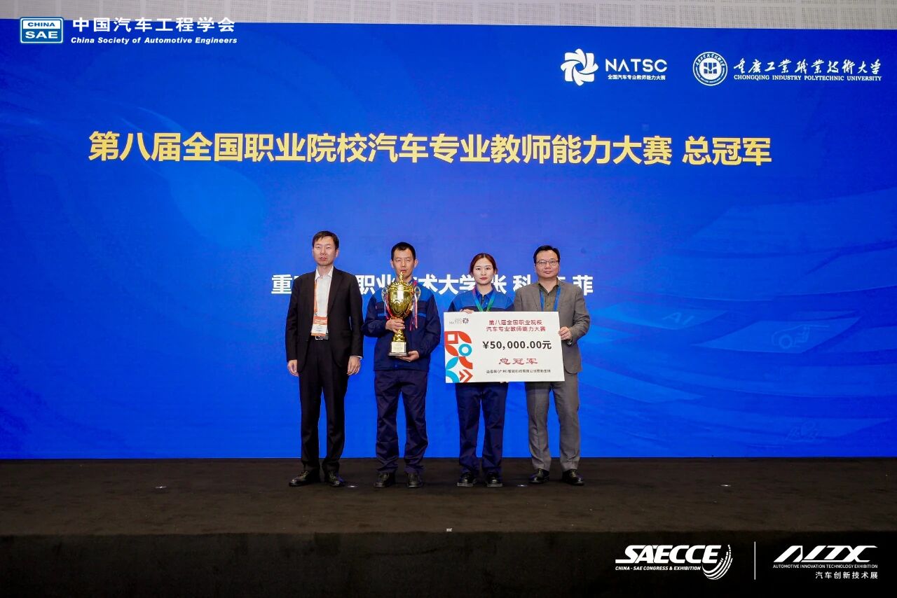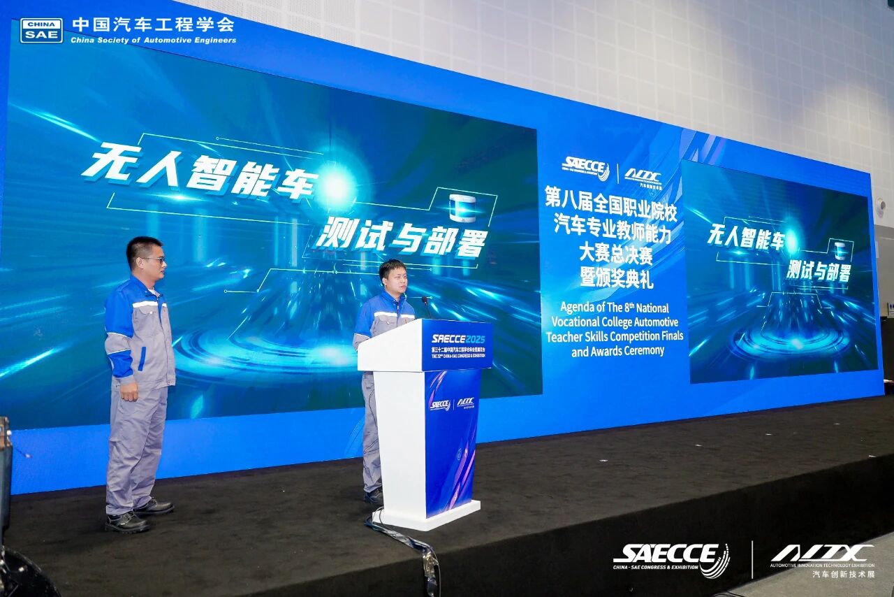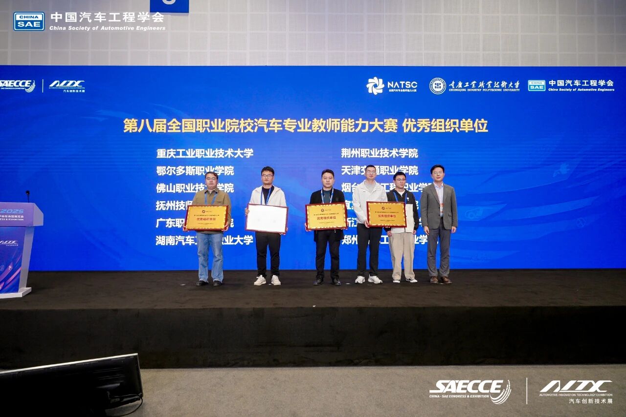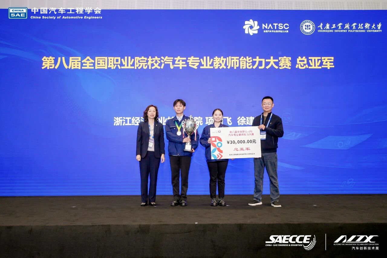 2025年10月24日上午,第八届全国职业院校汽车专业教师能力大赛总决赛在重庆科学会堂圆满闭幕,与第三十二届中国汽车工程学会年会暨汽车创新技术展同期举办。大赛由中国汽车工程学会主办,国家智能网联汽车创新中心、国家新能源汽车技术创新中心、国家燃料电池技术创新中心、全国汽车职业教育集团联合主办,中国汽车维修行业协会、中国汽车流通协会协办。总决赛由重庆工业职业技术大学、中国汽车工程学会汽车应用与服务分会等单位承办,易飒(广州)智能科技有限公司和浙江赛格教仪科技有限公司共同协办。