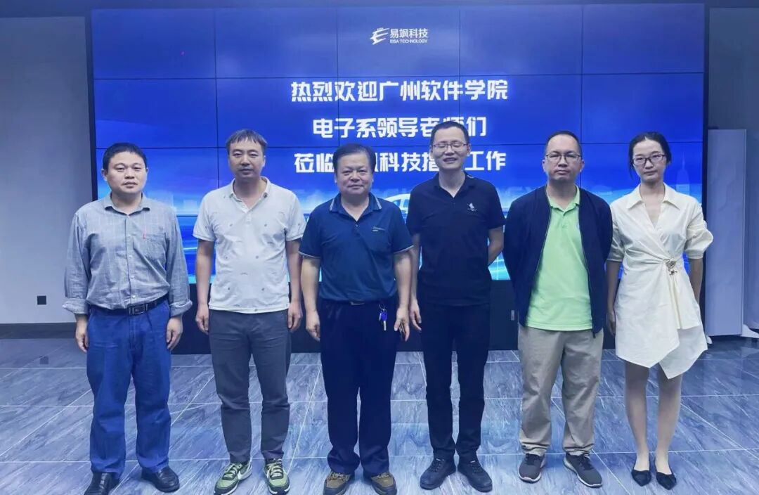 10月17日,广州软件学院电子系副主任张义宽,电子信息工程专业负责人谭石坚,专业老师叶和忠、陈海峰一行到访易飒科技座谈交流,易飒科技市场部总经理祁飞带队接待。