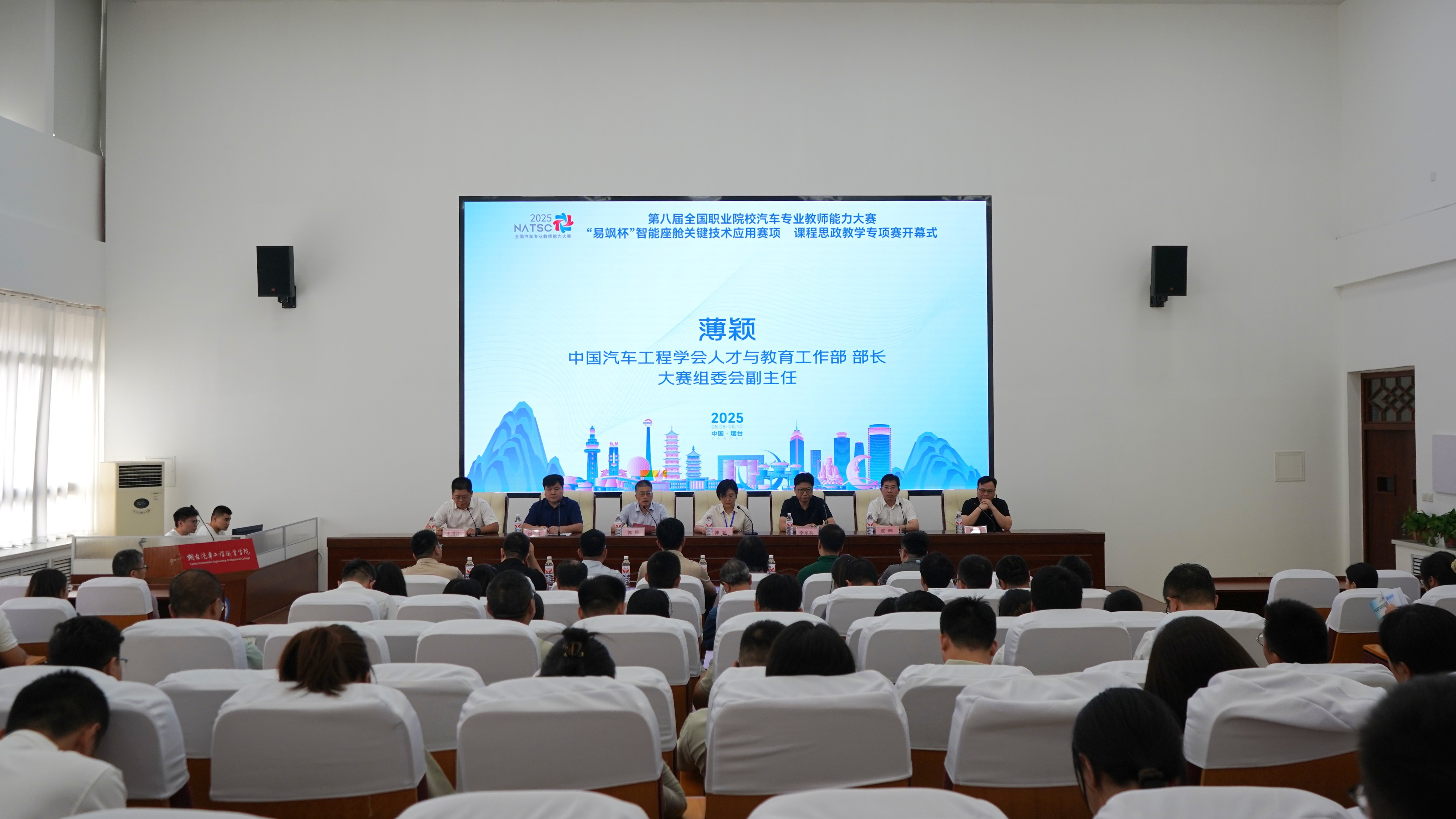 8月8日下午,第八届全国职业院校汽车专业教师能力大赛“易飒杯”智能座舱关键技术应用赛项和课程思政教学专项赛在烟台汽车工程职业学院拉开序幕,共计来自全国20个省份63所职业院校的81支队伍报名参赛,相关领导嘉宾、参赛队指导专家和选手、赛项专家、裁判和监督仲裁约200人参与了开幕式。